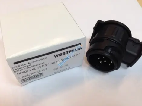 Wysokiej jakości, a przy okazji przystępna cenowo przejściówka 13/7 gniazda elektrycznego z 13-sto pinowego na 7 pinów (pozwala na podłączenie zasilania bagażnika/przyczepy wyposażonego we wtyczkę 7-mio pinową do auta z gniazdem 13-sto pinowym).