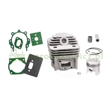 W zestawie: Cylinder, tłok, pierścienie, sworzeń, łożysko, zabezpieczenia i uszczelki.